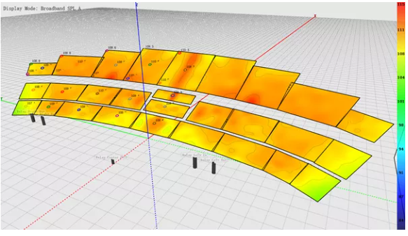 但在實(shí)際系統(tǒng)實(shí)施的過(guò)程中,吊掛高度很可能受限。因此第二張圖展示了同樣的陣列在吊掛高度為9米時(shí)的覆蓋情況,通過(guò)調(diào)整陣列物理姿態(tài)獲得了與第一張圖非常接近的覆蓋結(jié)果。