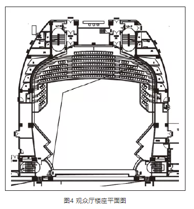 根據(jù)確定的混響時間值,對主劇場觀眾廳進(jìn)行聲學(xué)材料布置,同時遵循室內(nèi)聲學(xué)材料布置原則,確定觀眾廳空間以下部位的材料及構(gòu)造做法。