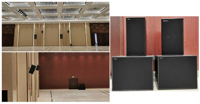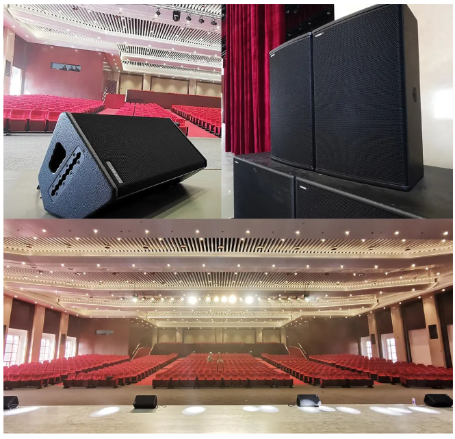 小報(bào)告廳左右主擴(kuò)采用德國(guó)TWAUDiOT20N點(diǎn)聲源 2只,搭配4只緊湊型超低B17i,拉聲像則由2只T20i點(diǎn)聲源負(fù)責(zé),后場(chǎng)補(bǔ)聲和舞臺(tái)返送則分別由左右鏡像對(duì)稱的全頻揚(yáng)聲器M12i和M12擔(dān)任,整個(gè)系統(tǒng)依然由RAM AudioZETTA系列功放進(jìn)行驅(qū)動(dòng)。